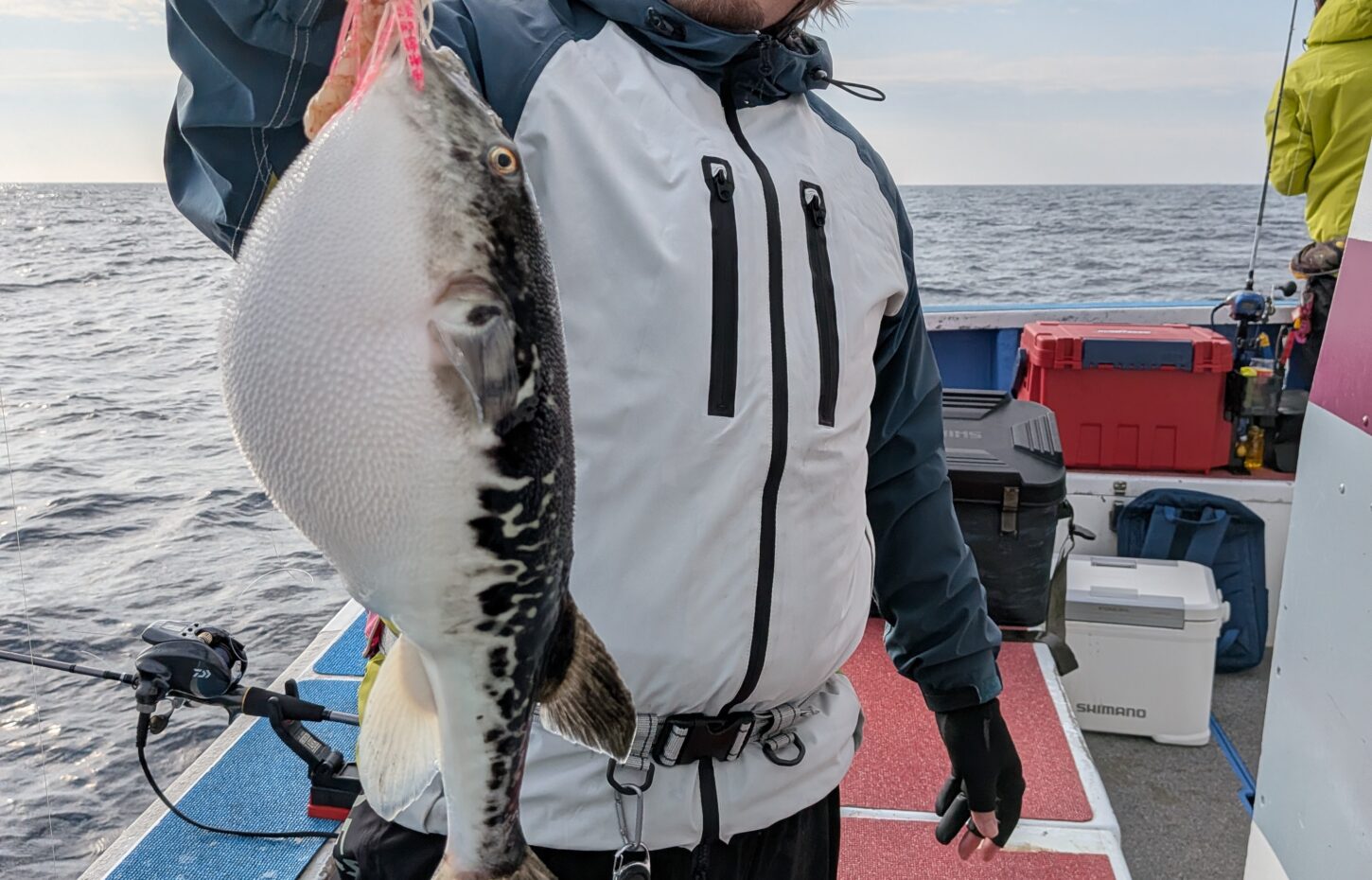 国崎漁港から沖合へ数キロも出れば、オオアジ・フグ・マダイなど