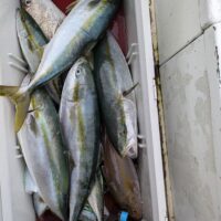 朝便のヒラメ釣りは3名でケンカブリ〜ブリを6本とヒラメが5枚でした。ヒラメも型は良かった。