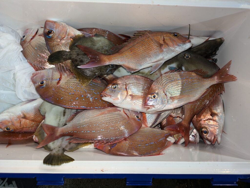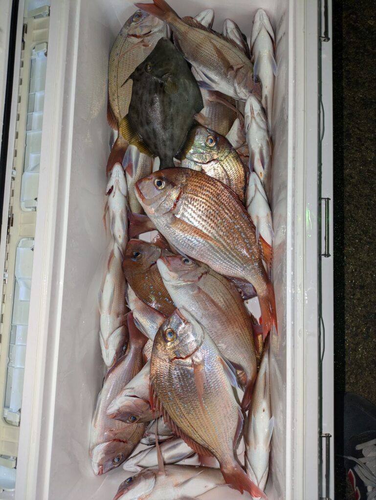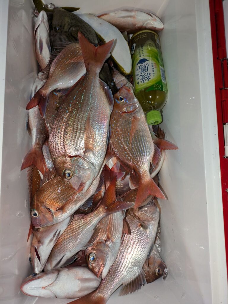 午後便でウタセマダイに出船しました。始めは鯛のポイントで真鯛やチダイの土産を釣ってからカンパチを狙いに行く。カンパチは3本同じ人が釣って他へは回らなかった。