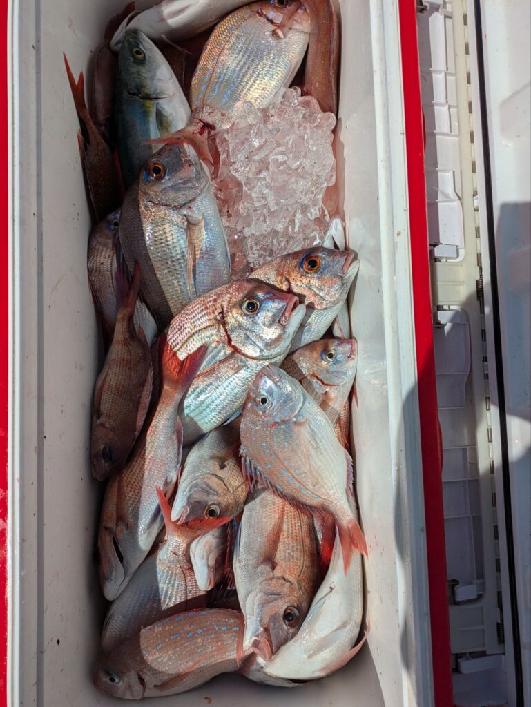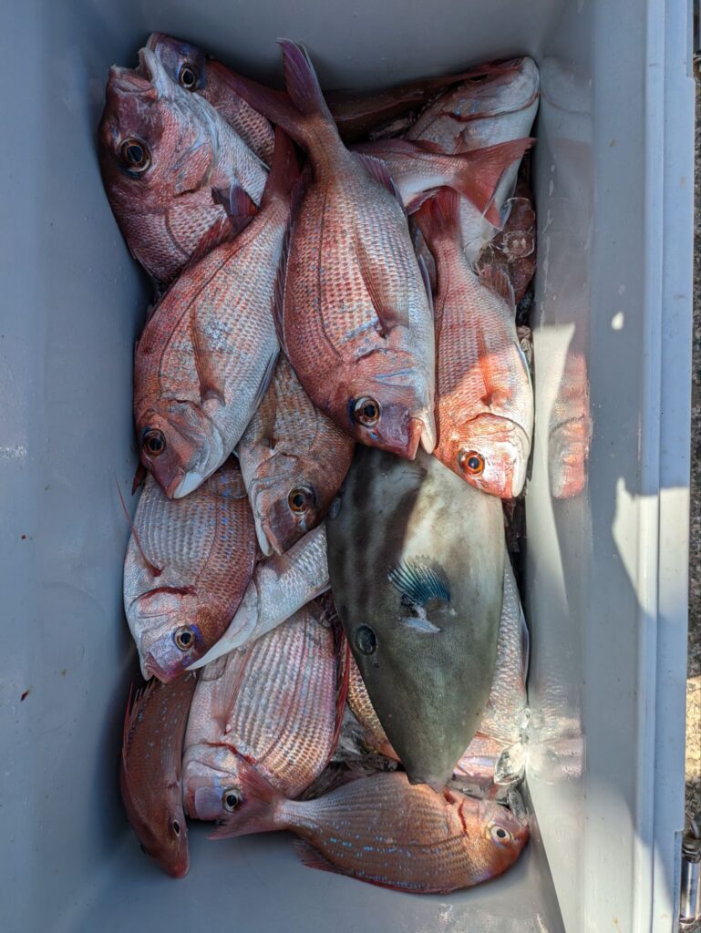 ウタセエビのエサで真鯛やチダイ、カンパチ、ハマチなどが釣れてます。