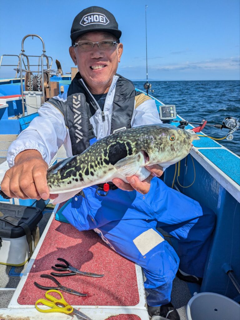 朝便でトラフグ釣りに出船。アタリはあったが針掛かりしにくく掛かっても仕掛けを何回か切られて結局上がったのは1匹でした。また金曜日に挑戦します。