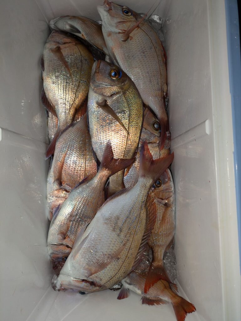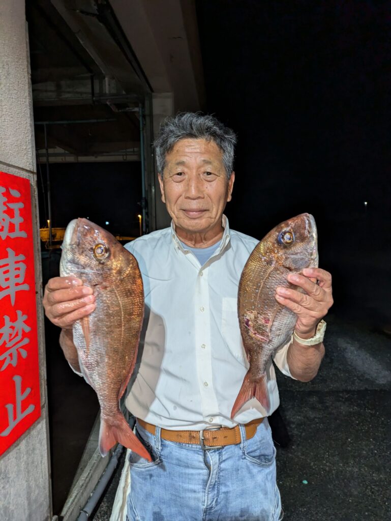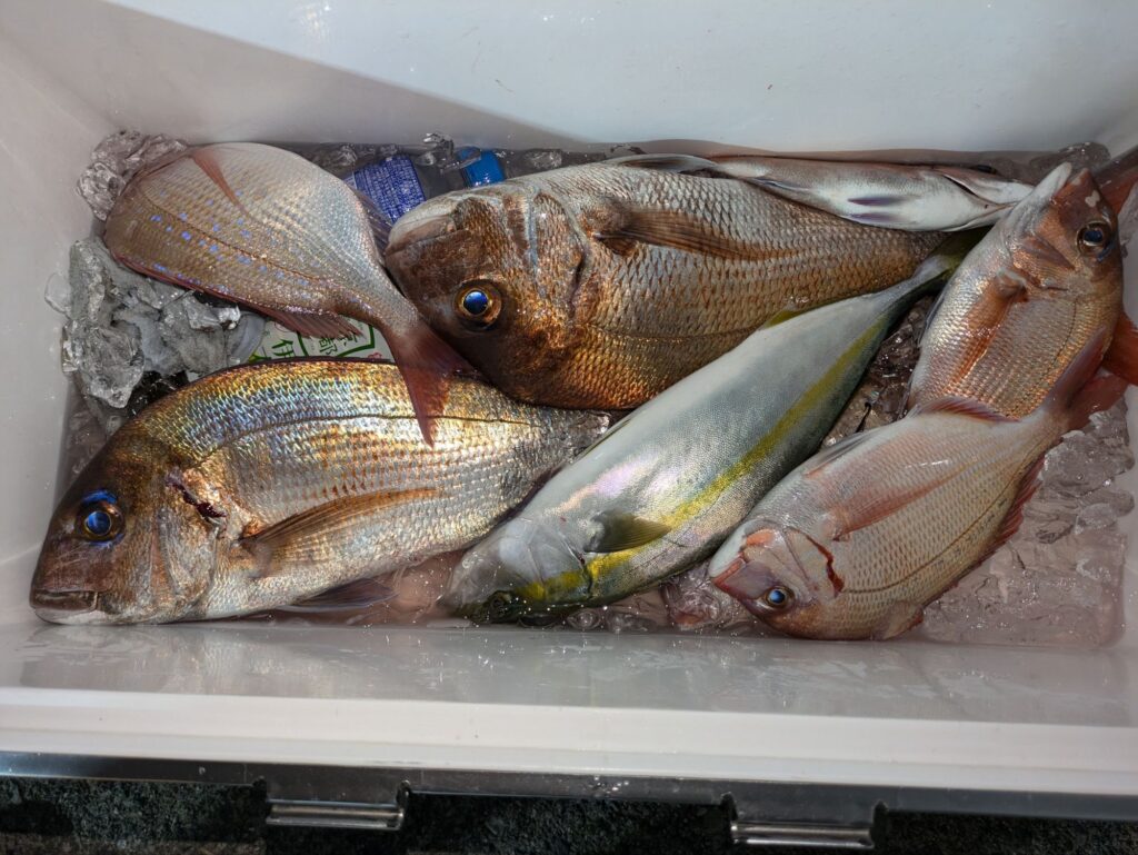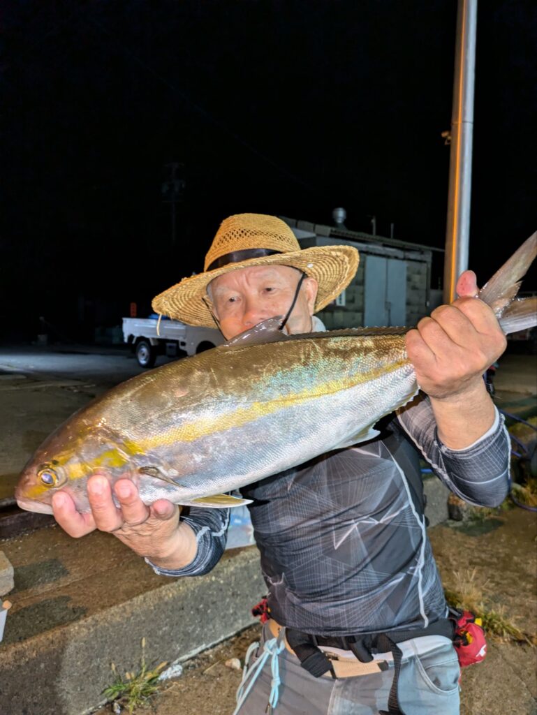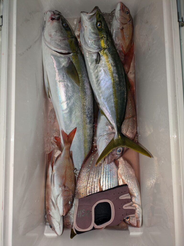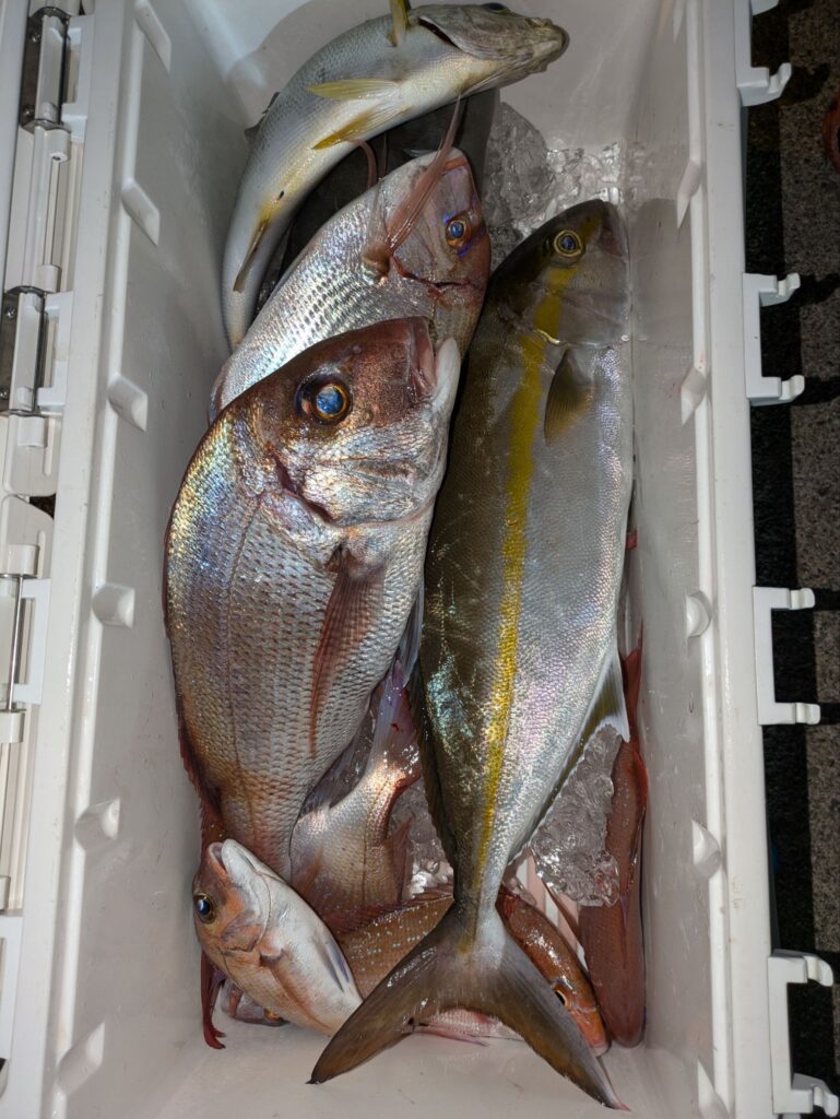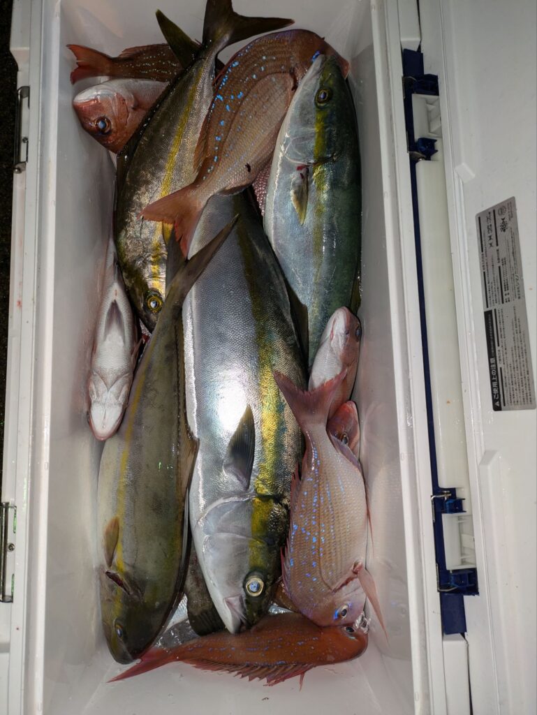 午後便のウタセマダイは夕方カンパチや大ハマチ、ハマチ、シマアジ真鯛などがボチボチ釣れました。シマアジは55cmの良型でした。