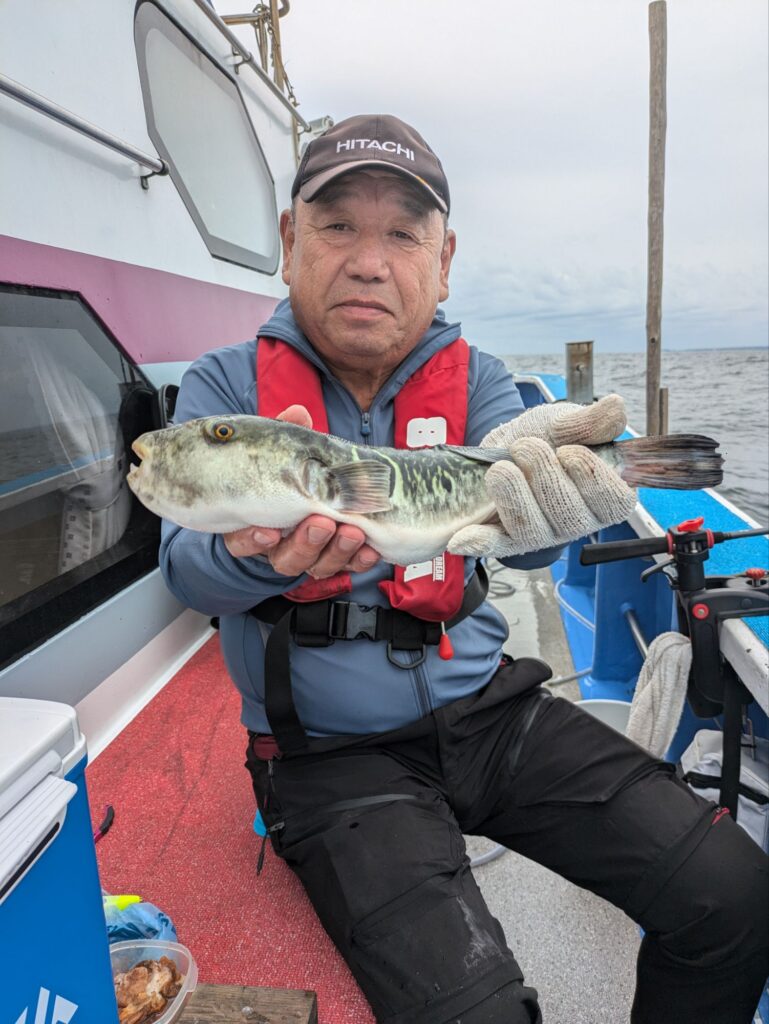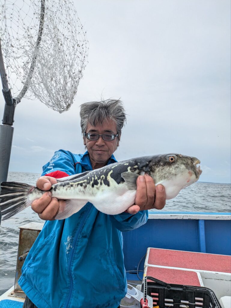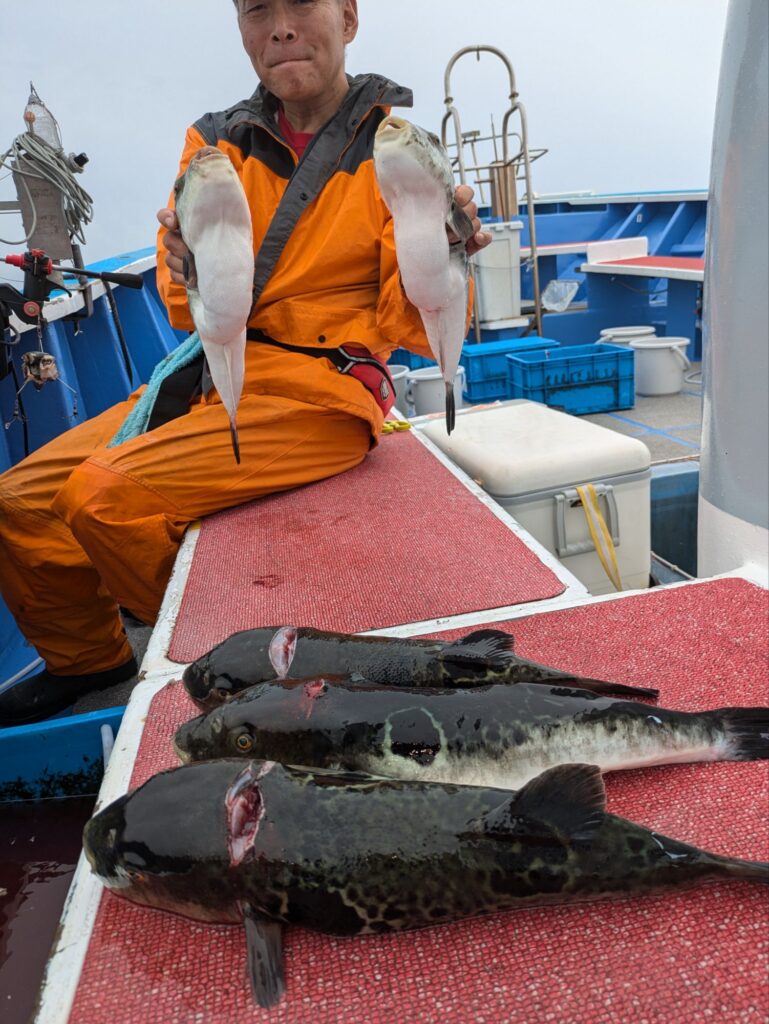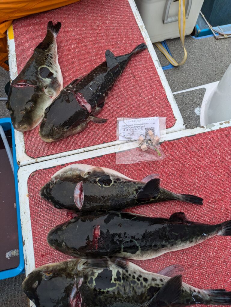 朝便はトラフグ釣りに出船。お客さんは3名で1〜5匹の釣果。考作釣具工房のカットウ仕掛けが掛かりが良く使ってた方は5匹釣ってました。仕掛けは船にあります。