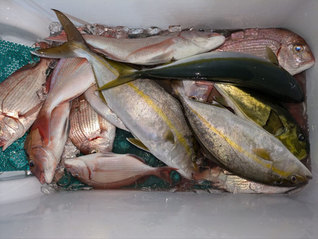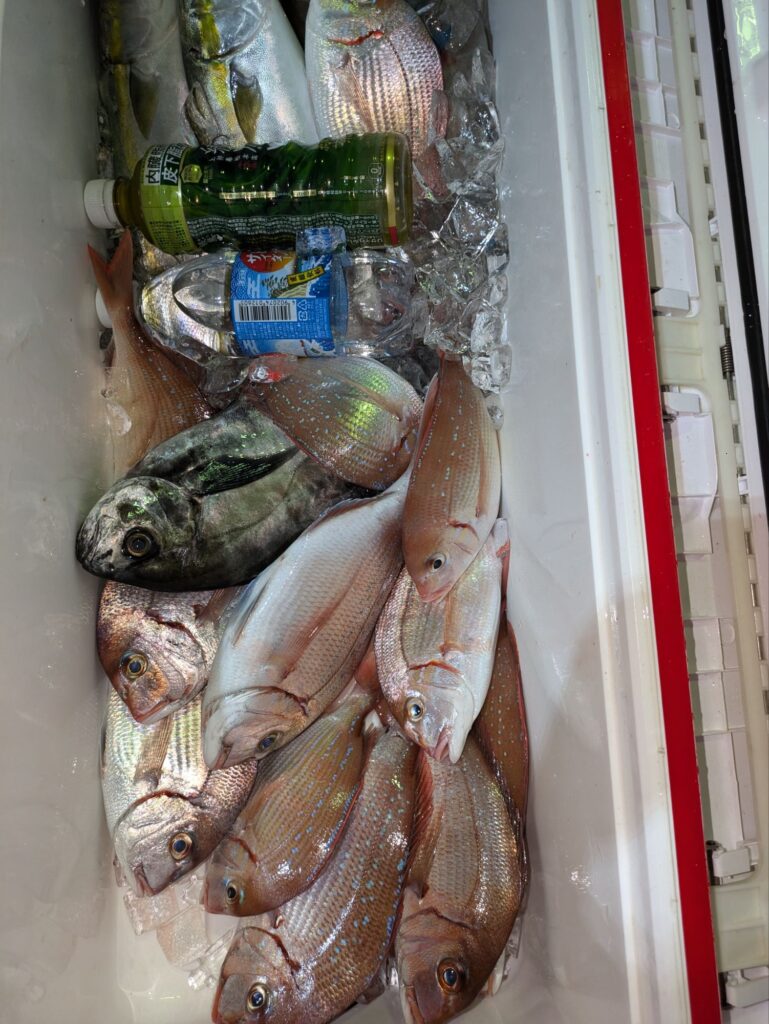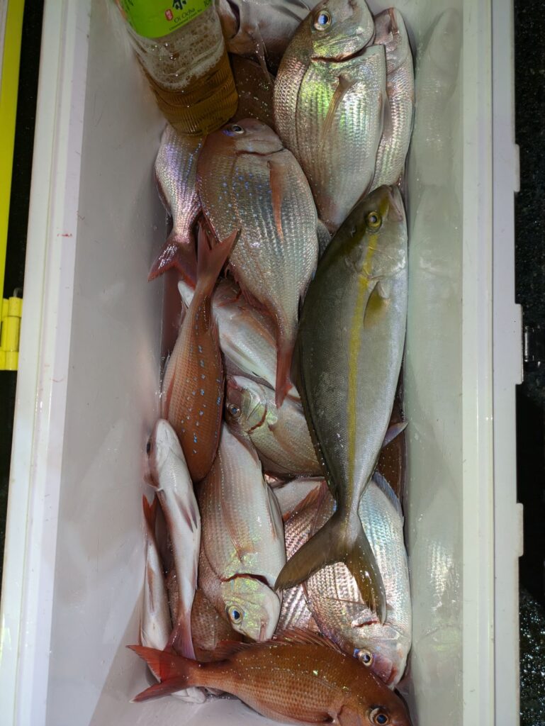 午後便のウタセマダイはカンパチやハマチ、真鯛、チダイなどボチボチ釣れました。