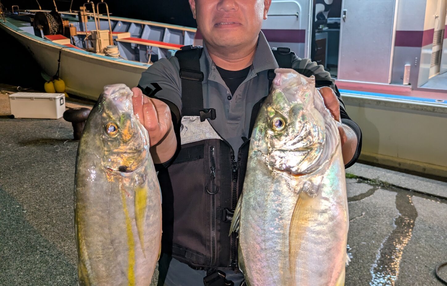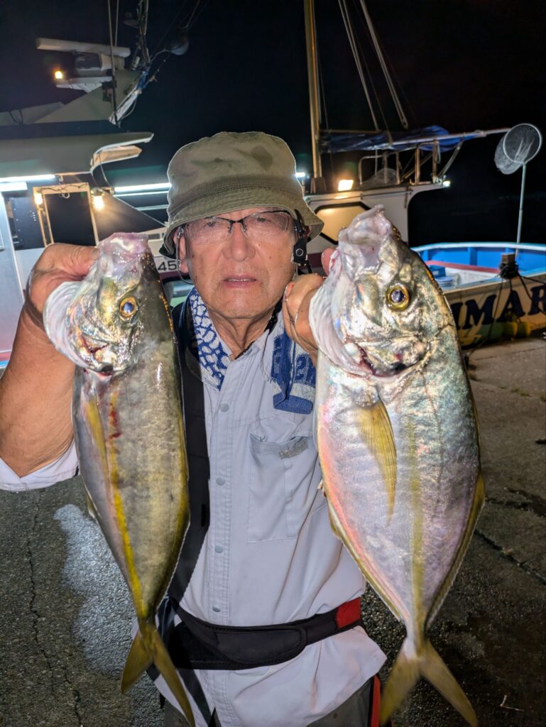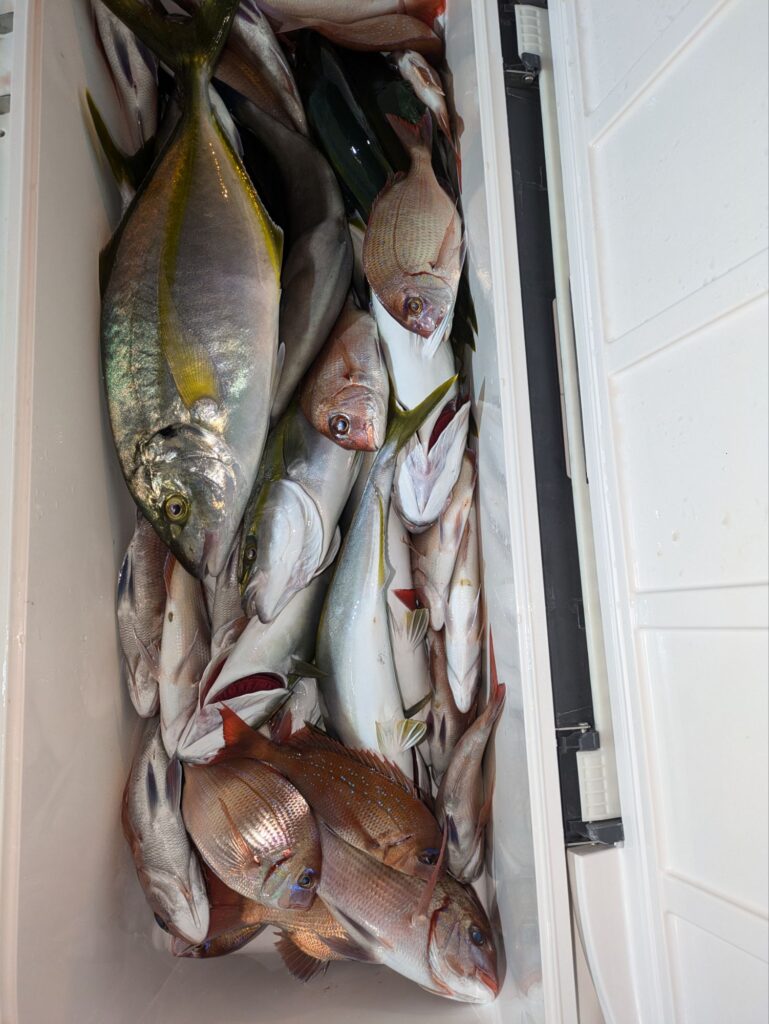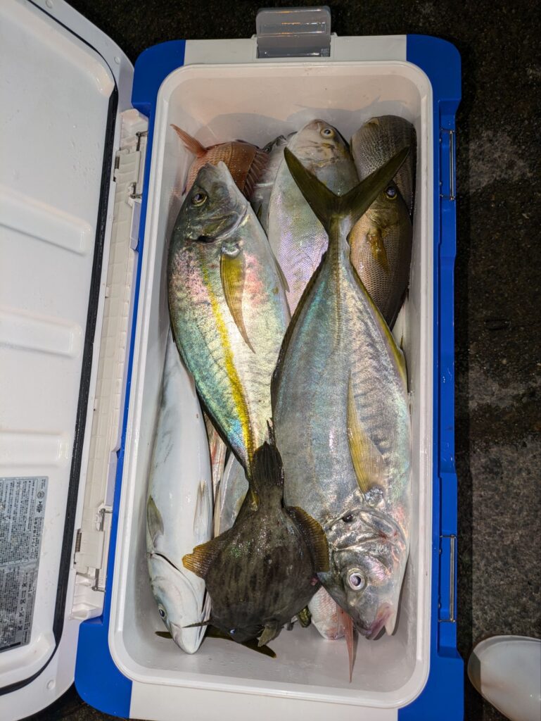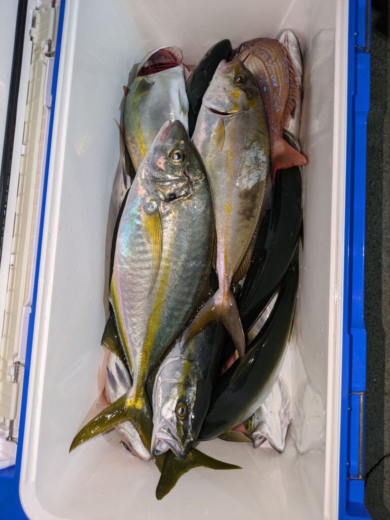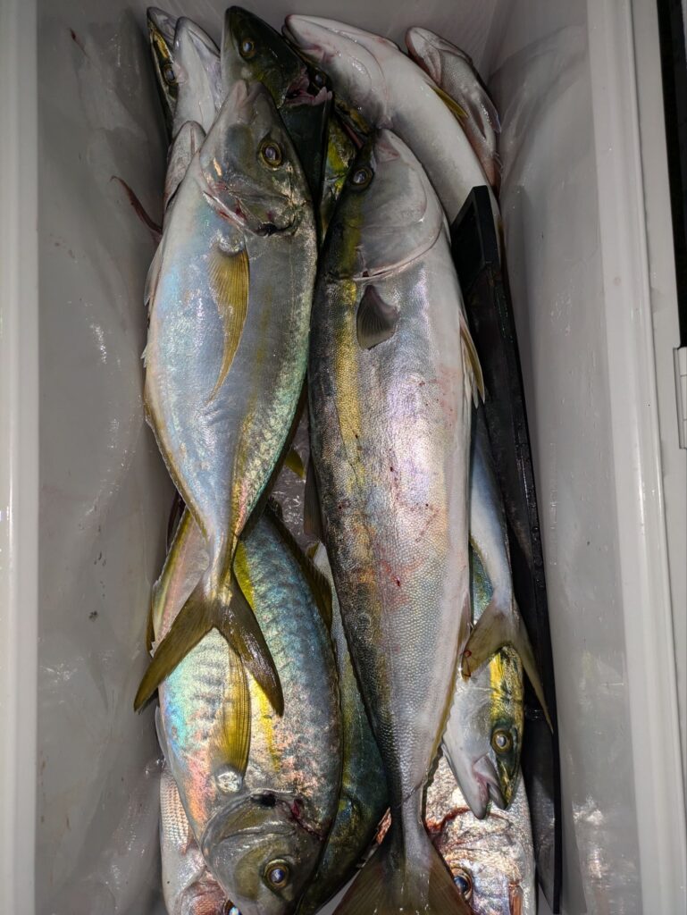 午後便のウタセマダイは近場で鯛やハマチが良く釣れて夕マズメにカンパチを狙いに行く。シオが2本でしたがシマアジの40cm〜50cmが6匹。丸々太ってて美味そう!