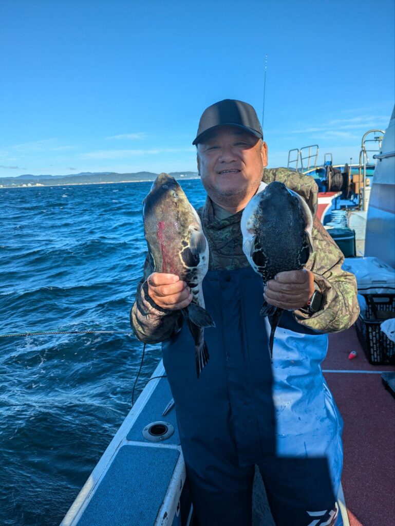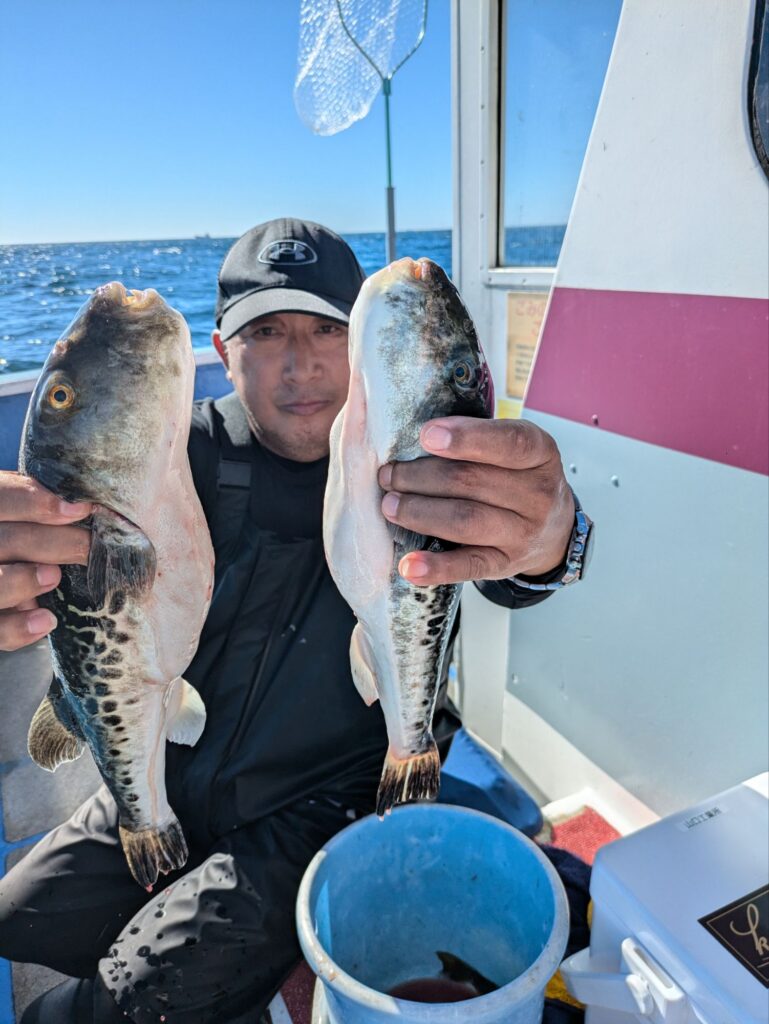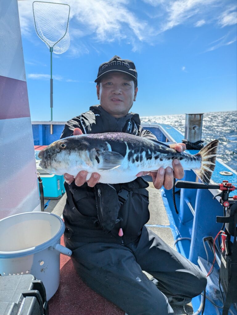 朝はトラフグ釣りに出船。お客さん3名で2〜3匹の釣果。船中7匹でした。