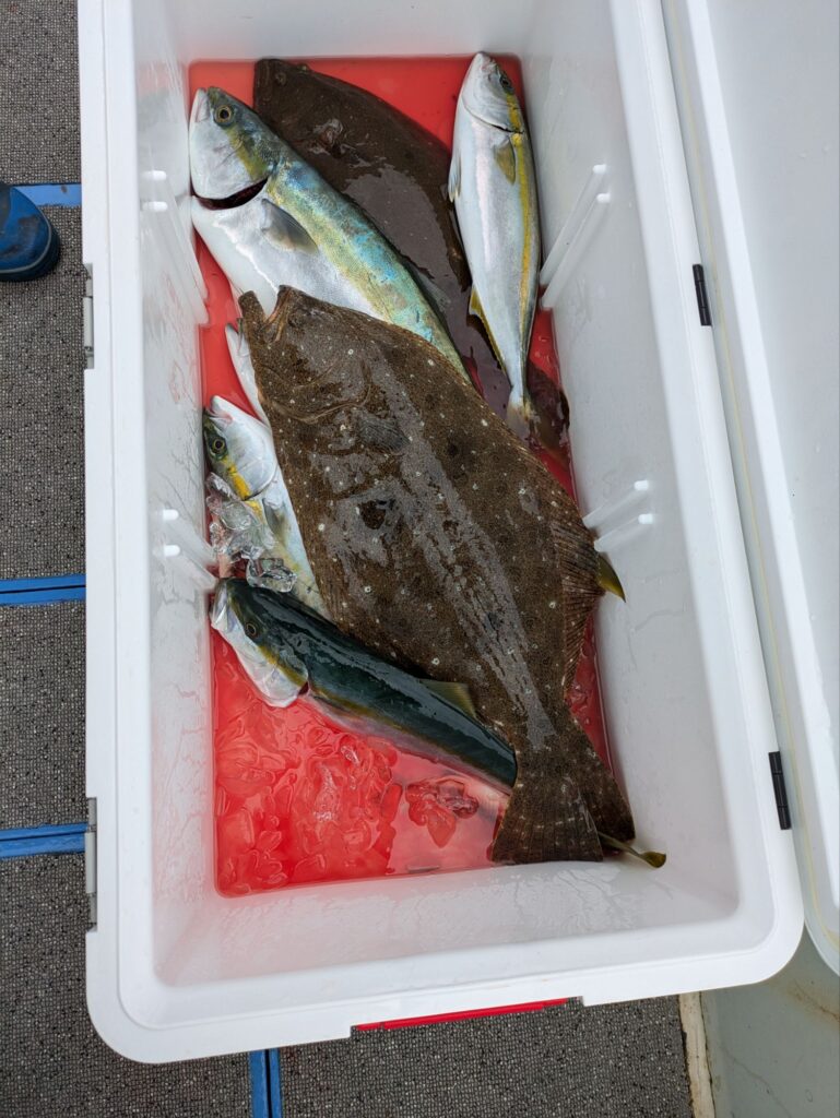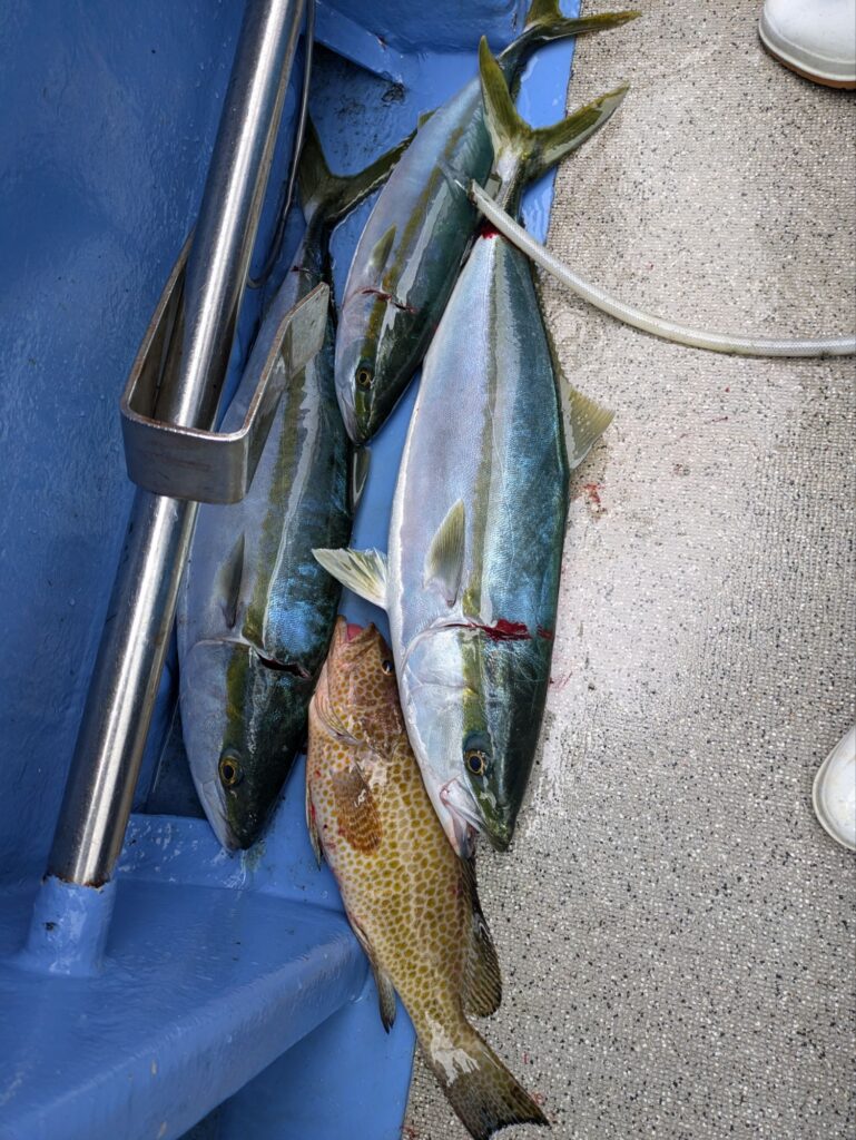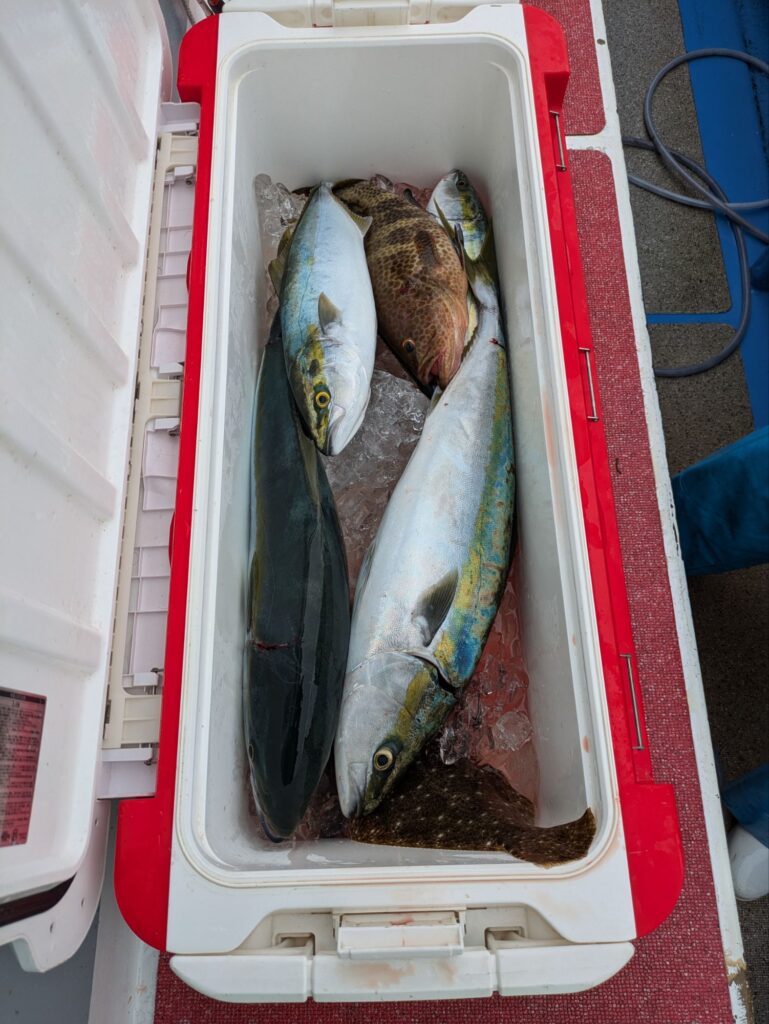 朝便のタテ釣りはアジのベイトで大ハマチやヒラメ、ハマチ、ハタなどが釣れてました。明日の朝便タテ釣りで出船します。空いてますので希望の方は連絡下さい。