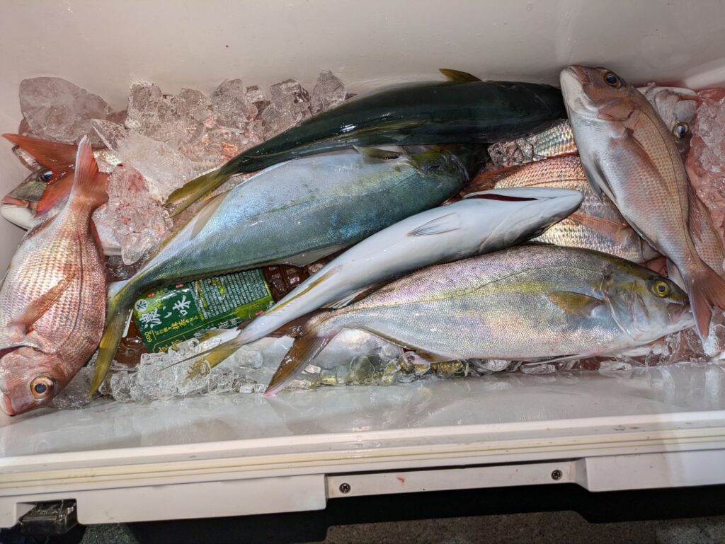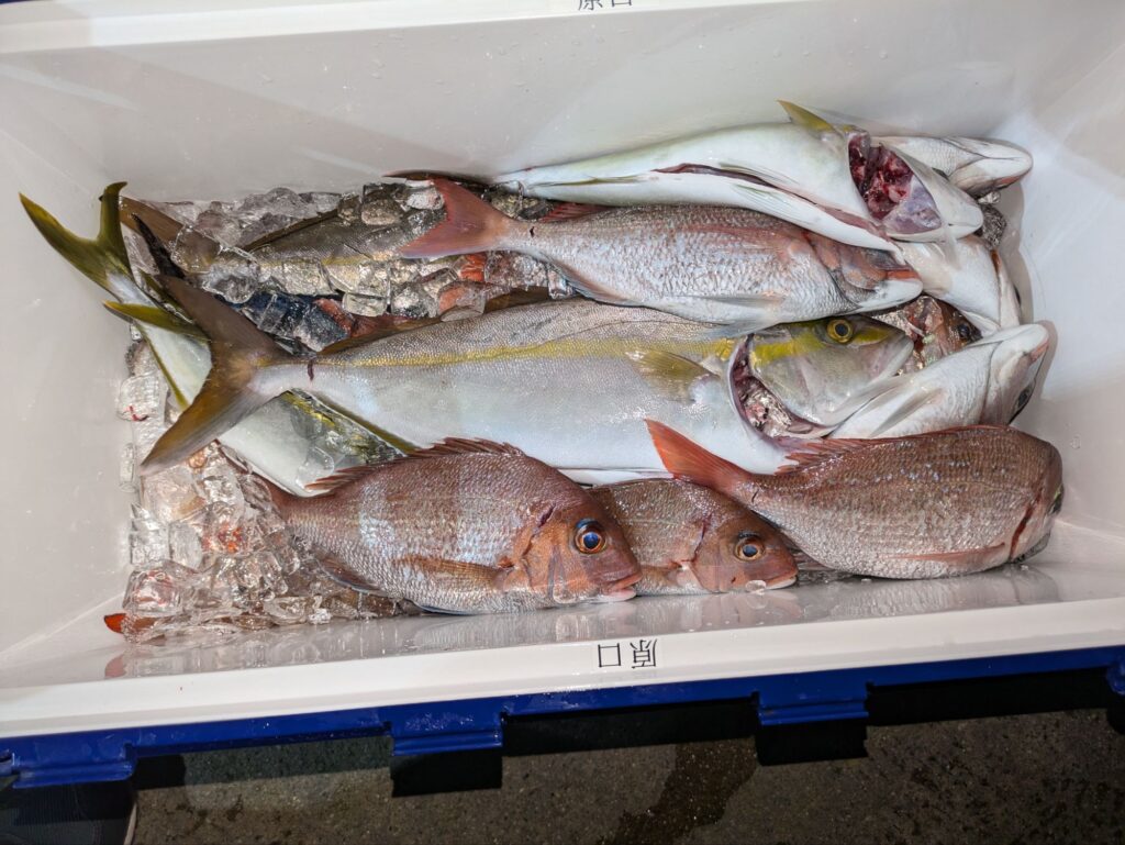 昼便のウタセマダイはチダイやマダイ、ハマチ、カンパチなどボチボチ釣れてました。
