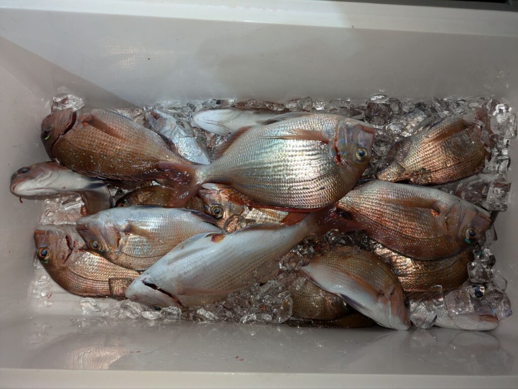 昼便でウタセマダイに出船。潮が澄んでいるせいか餌は良く取られるが食いが悪かった。