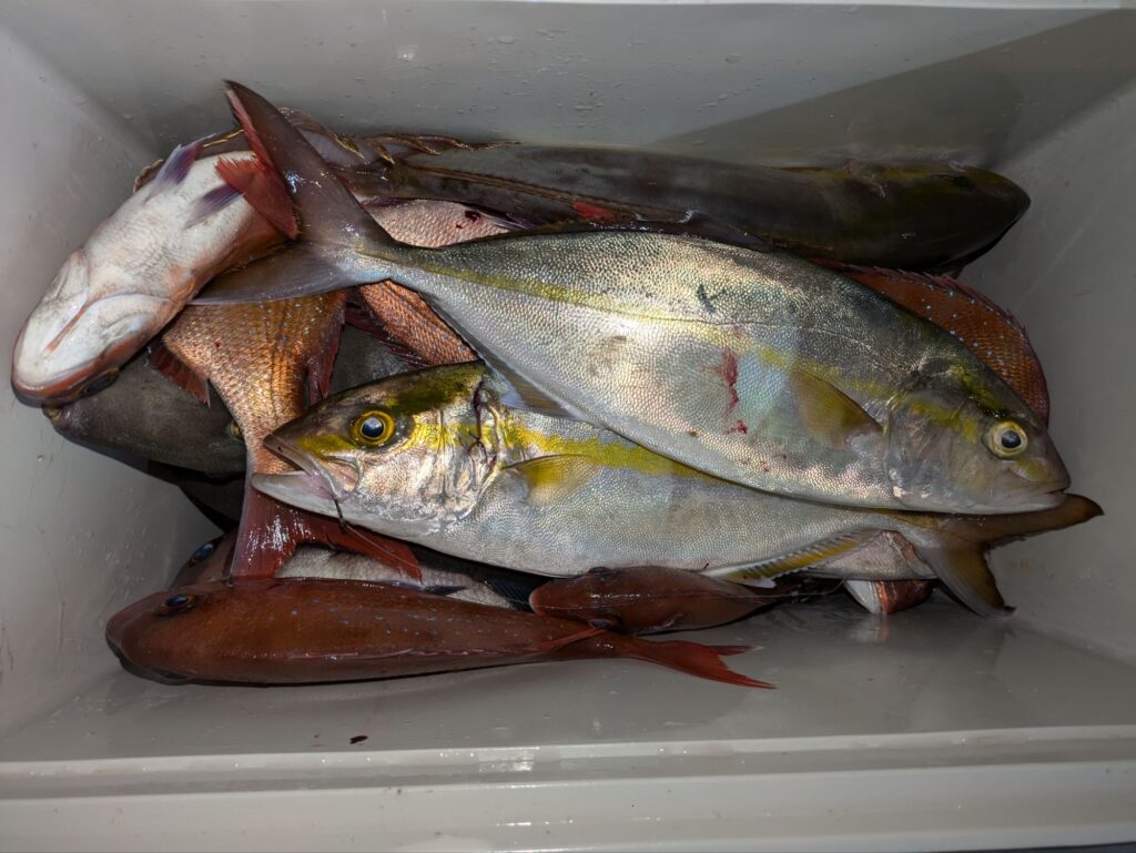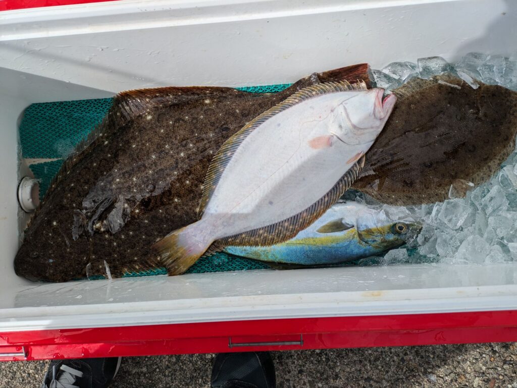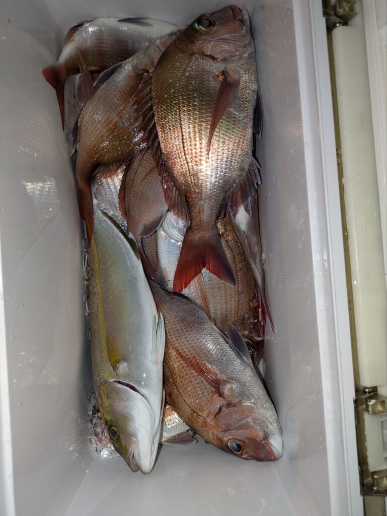 釣果情報 ヒラメとウタセマダイ 2025.11.3 朝のヒラメ釣りは船中8枚の釣果。他にブリやワラサ、ハマチが釣れてました。 昼便のウタセマダイは初めは鯛を釣って夕方カンパチを狙いに行く。1回群が回遊して来てダブル、トリプルで釣れてが後が続かず。