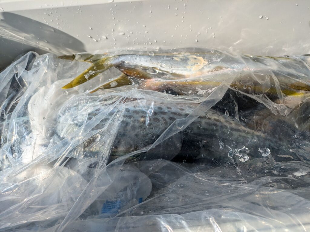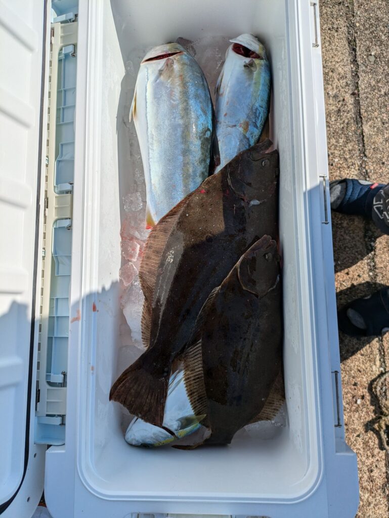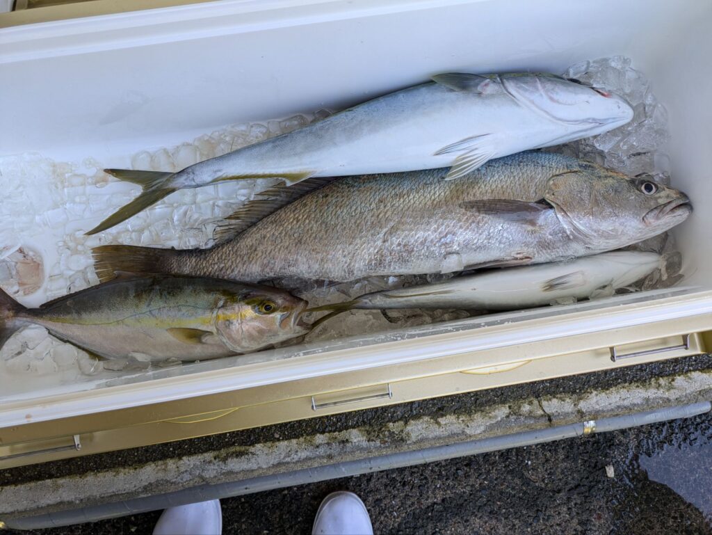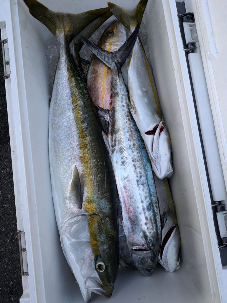 朝便はイワシの泳がせでヒラメや青物を狙って出船してます。今日もサワラや大ハマチ、ハマチ、カンパチ、ヒラメなどボチボチ釣れました。