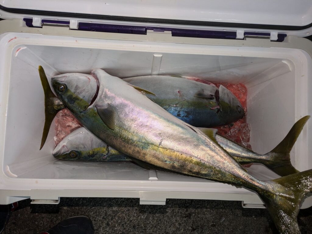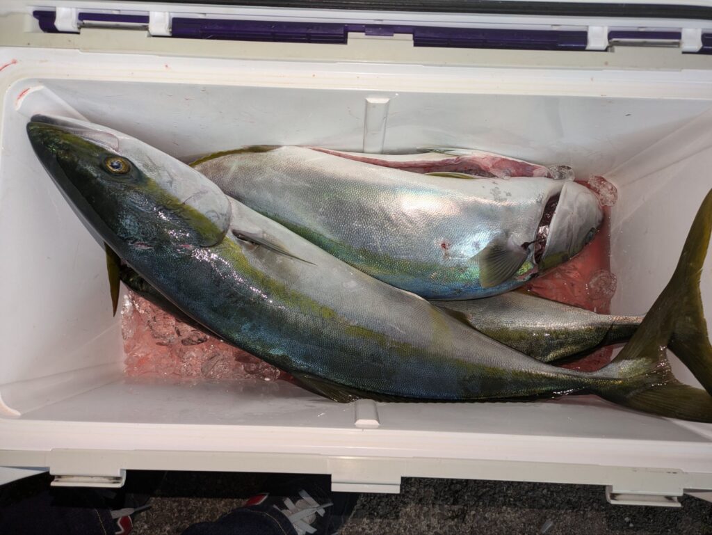 イワシの泳がせでヒラメや青物を狙って出船してます。朝便は青物が2本でしたが昼からは上潮が流れて1〜4本で11本上がってました。