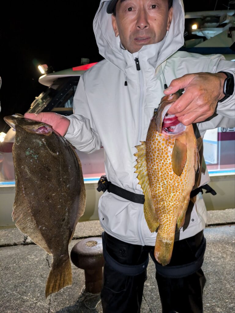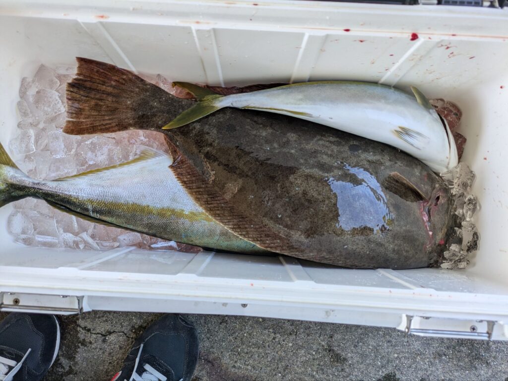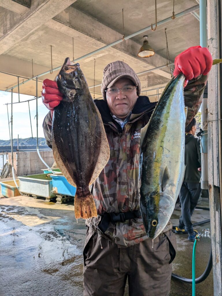 釣果情報 ヒラメ、青物狙い 2025.11.24 イワシの生き餌を使ってヒラメや青物を狙って出船してます。ベイトはイワシやアジでポツポツでしたがヒラメや青物が上がってました。ヒラメや良型が混じってます。