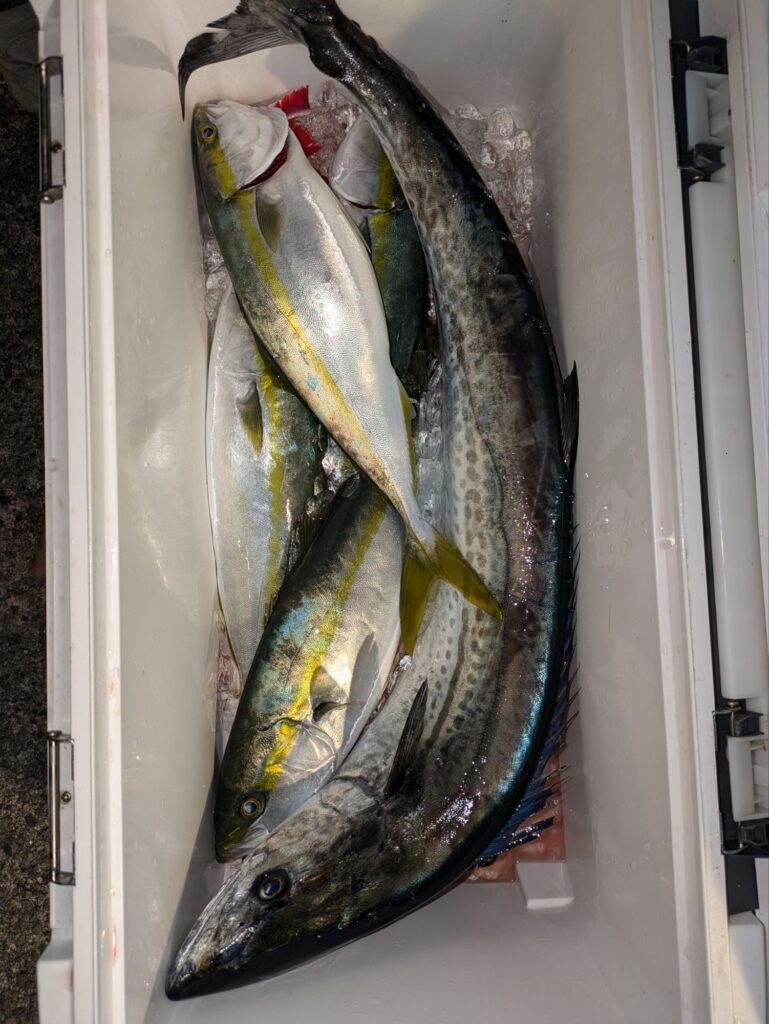 釣果情報 ヒラメ青物狙い 2025.12.6 イワシのエサでヒラメや青物を狙って出船してます。朝はヒラメは3枚でした。アタリもあったが針掛かりしなかった。昼からはポイントを変えて青物主体で狙った。ハマチや大ハマチ、サワラなど釣れて土産はできました。