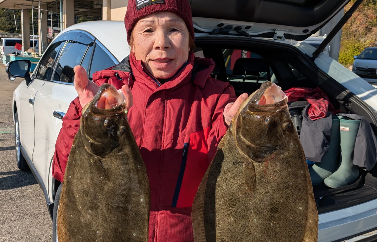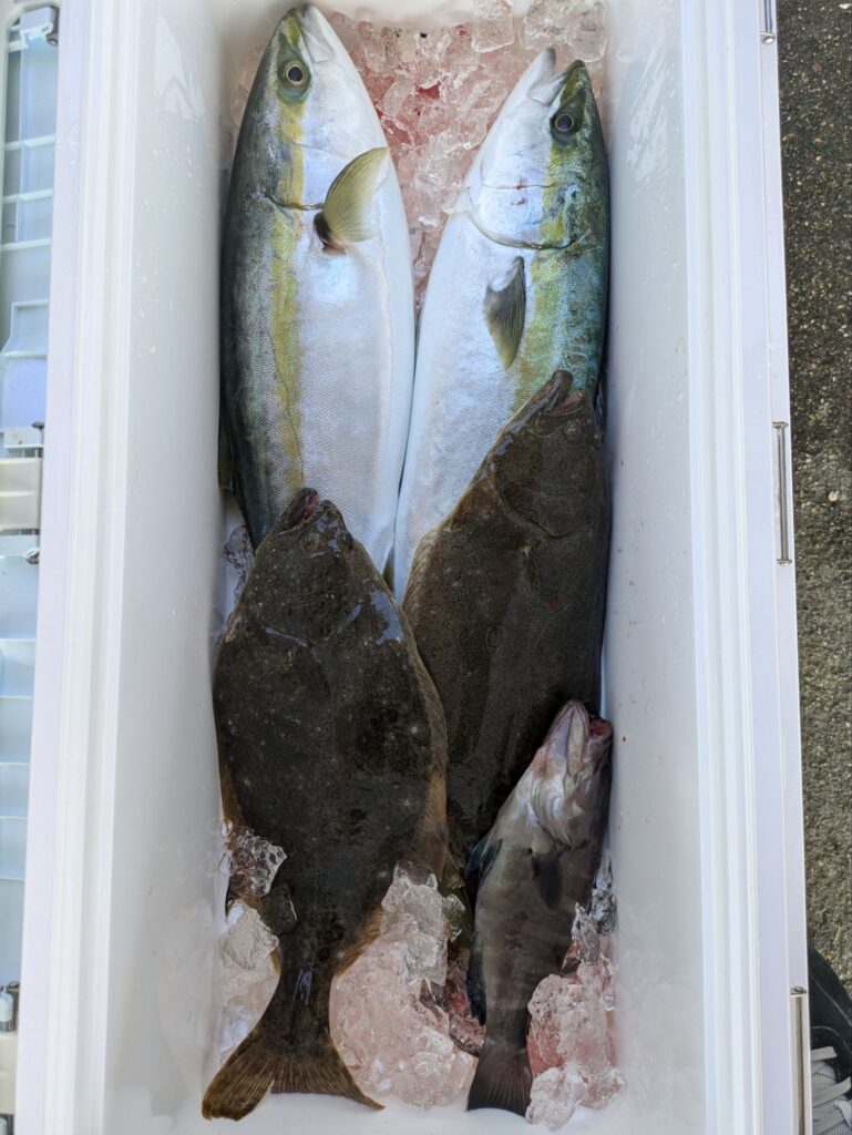 釣果情報 ヒラメ青物狙い。 2025.12.7 イワシの泳がせでヒラメや青物狙いで出船してます。二見沖のポイントでヒラメは多い人で3枚で船中10枚の釣果。明日は朝6時出船です。空いてますので希望の方は連絡下さい