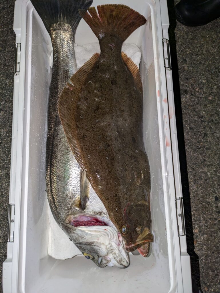 昼便のヒラメ、青物狙いはヒラメ4枚とスズキが4本大ハマチが1本でベイトが沢山いても大物のアタリは少なかった。