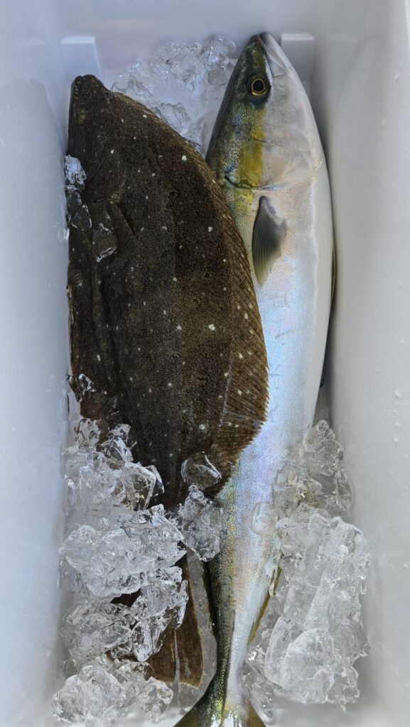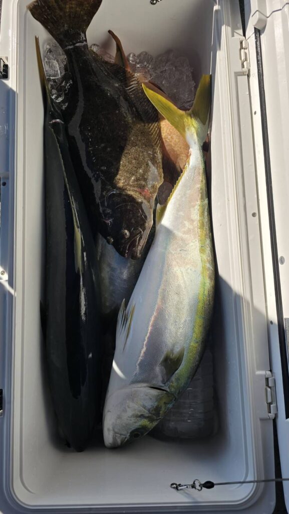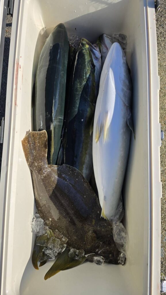 一日便でヒラメ青物狙いで出船。朝はベイトがいてもアタリが無く潮止まりから上潮にかけてアタリが出始めブリ、サワラ、ヒラメなどボチボチ釣れました。明日も一日便で出船します。空いてますので希望の方は連絡下さい。