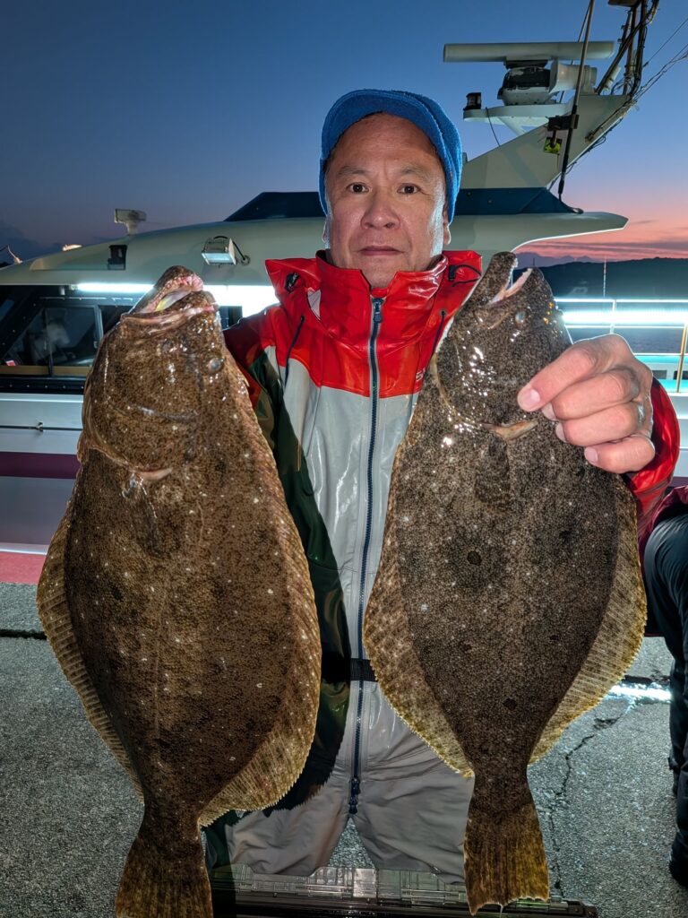 釣果情報 トラフグとヒラメ、青物狙い 2026.1.10 トラフグはアタリが少なく良いサイズでしたが1匹釣れただけでした。 昼便はアタリが結構有り良型混じりで11枚釣れました。昨日青物が良く釣れたのに今日は全然でした。