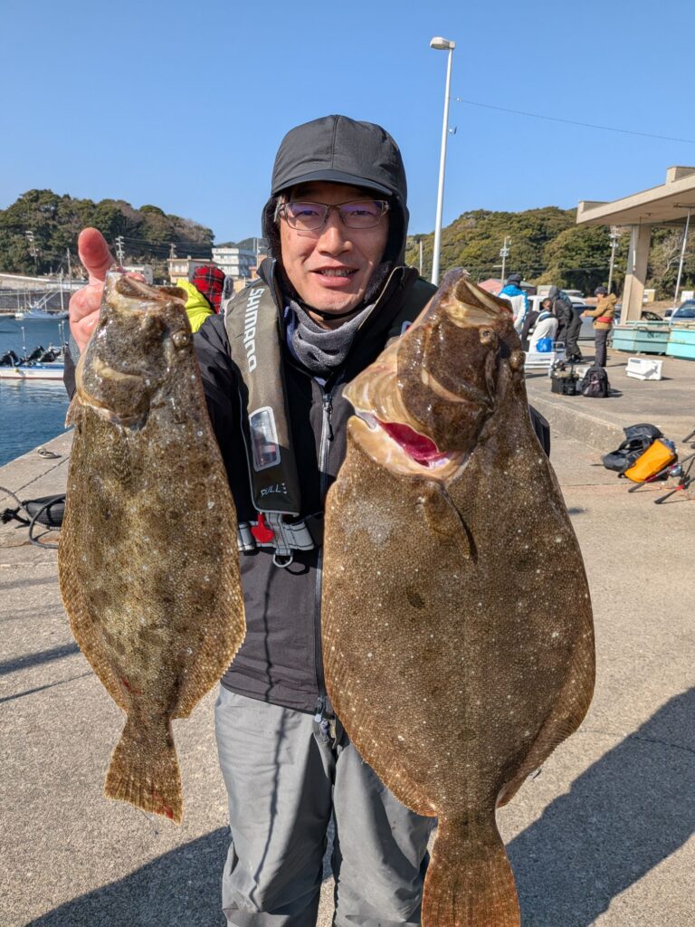 朝便のヒラメ釣りはアタリがよくあり良型混じりて22枚の釣果。