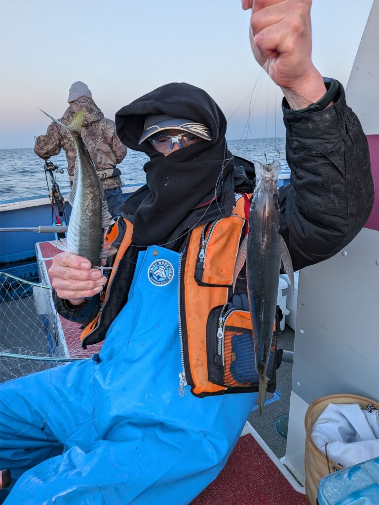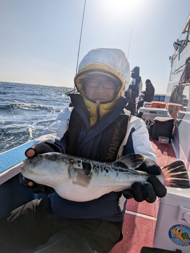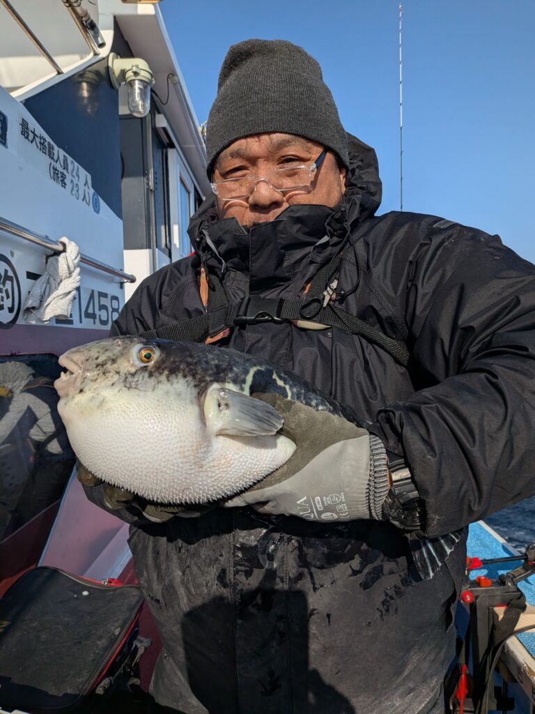 朝のトラフグ釣りはアタリが少なかったが二匹釣ることができた。