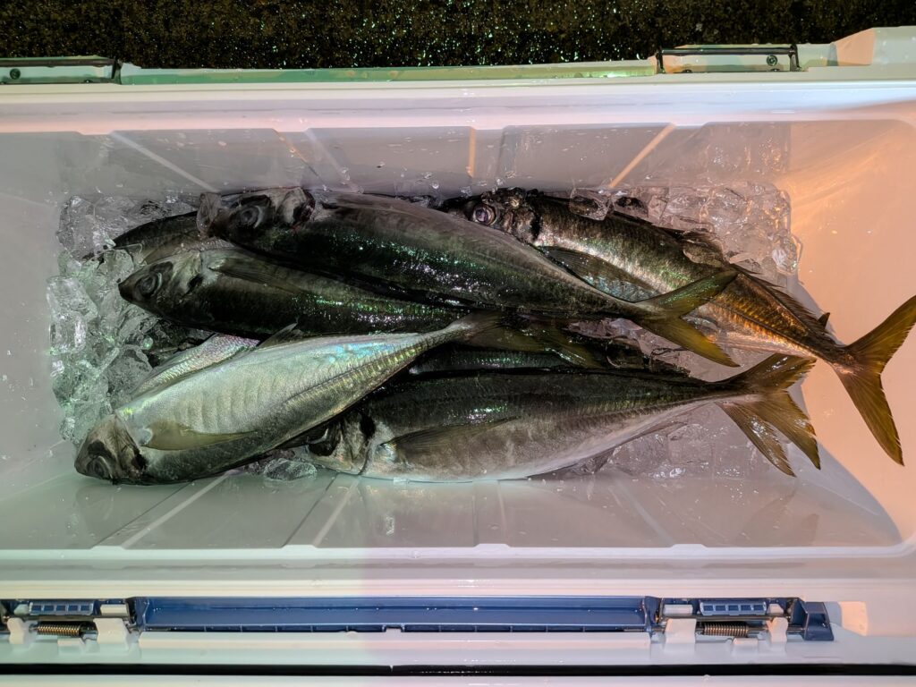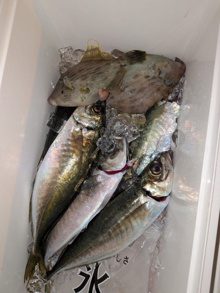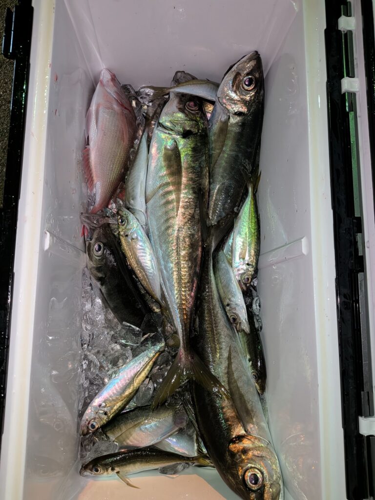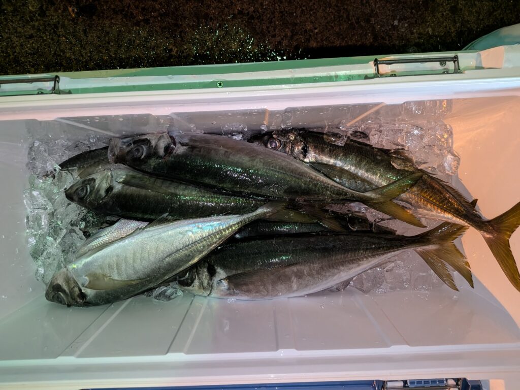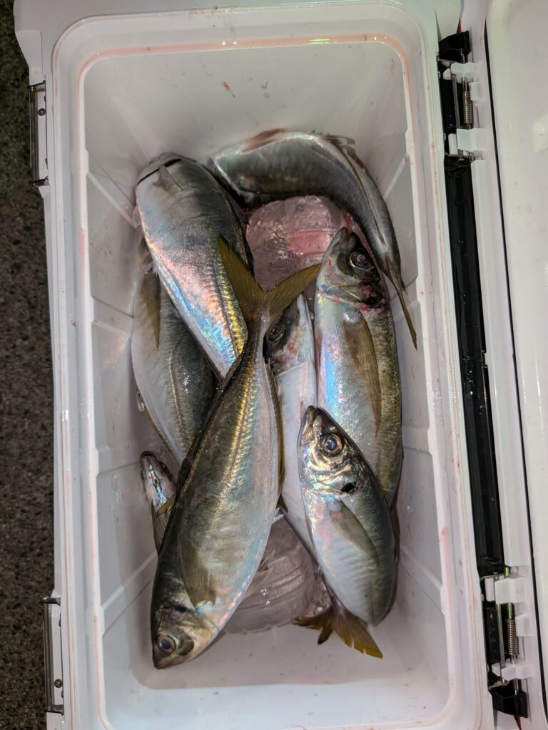 昼からのアジも潮が動かず群が逃げ回り大したこと無かった。