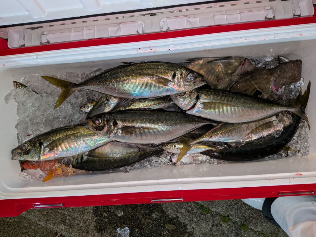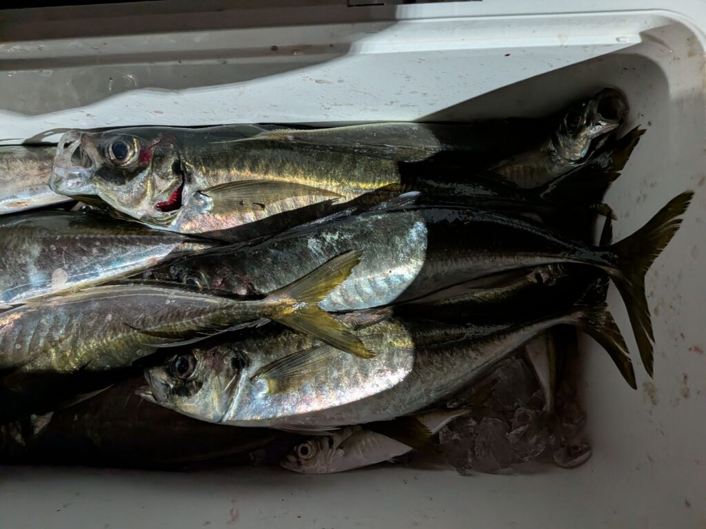 釣果情報 ヒラメとアジ 2026.2.4 朝のヒラメはベイトは沢山いるがヒラメのアタリは少なかった。良型が混じってます。 昼便のアジは群れは大きくなかったがいいポイントに入るとアタリはあり釣ってる人は結構釣ってました。潮の流れる方向や棚で釣果に差が出ます。
