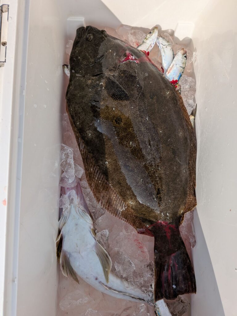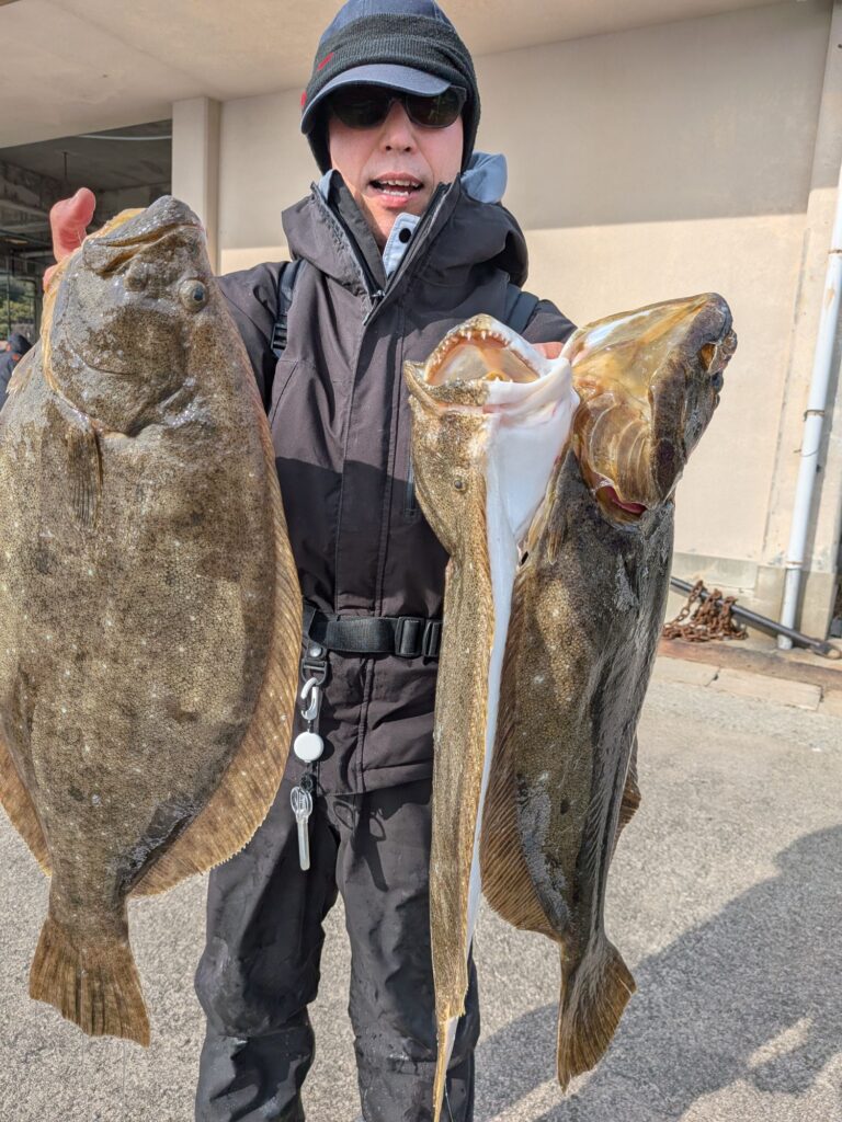 一日便でヒラメ釣りに出船しました。ベイトはたくさんいて多い人で良型を3枚釣ってました。